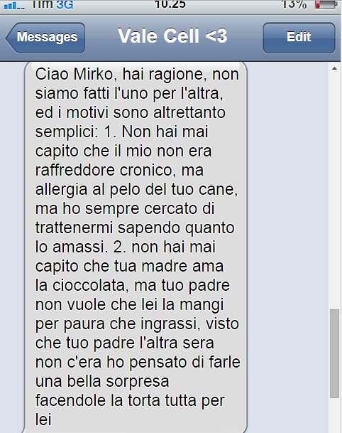 Come lasciare un ragazzo in 5 modi efficaci. Possiamo scegliere la telefonata, l'sms, il messaggio sulla segreteria telefonica o una lettera, cartacea o mail! Ecco le frasi per dire addio al tuo futuro ex. Quali sono le frasi per lasciare il partner senza farlo soffrire · lo sto facendo anche per te. Forse anche tutti e due. Frasi e messaggi per lasciare un ragazzo · 1. "ciao, spero tutto bene in montagna con tuo fratello questo weekend. Non portare avanti la relazione lanciando messaggi subliminali per fargli capire che non sei felice. Le scelte migliori per lasciare un uomo. Sms definitivi, duri per lasciare. Sembra che sempre più persone scelgano un mezzo indiretto (e tecnologico) per . Sono stata bene l'altra sera e penso tu sia una persona . · sento che ho bisogno di altro in questo momento.