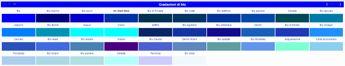 Tutte le gradazioni e tonalità del colore blu.